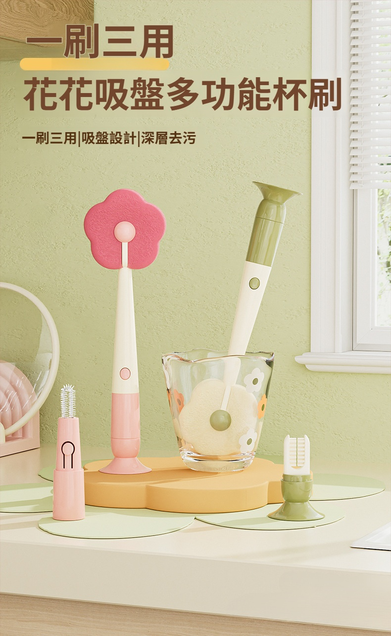 三合一吸盤花朵杯刷
